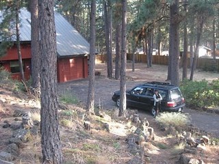 The 1/4 acre crater complete with picnic table, 2 firepits and cliffs to climb on. This shot is taken from the North Rim of the crater (the tallest cliff, at 15 feet)Well, sorry for the lack of posts the past 2 months. Busy as can be with the new house move. We just bought a house on an acre in an area south of Bend’s city limits. And as an added cool bonus, the acre has a 1/4 acre, 15 foot deep crater (photo above).