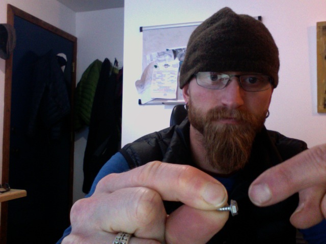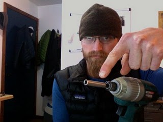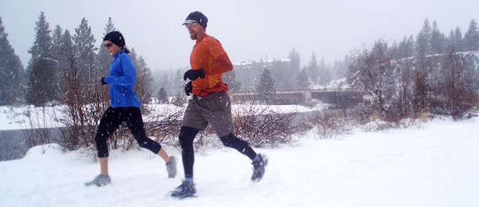 Krissy Moehl and I enjoying Bend’s winter wonderland on the Footzone Noon Run (held every Wednesday, rain, snow, or shine). And yes, we both have studded shoes in this picture.My buddy Scott Wolfe just emailed me about how to “stud” his shoes, so I thought I’d post a How To. Normally he doesn’t need such a set up in Eugene, but with this recent Arctic surge from the north, Old Man Winter gave them an ice storm and Central Oregon our first dump of snow. So, Wolfman, this post is dedicated to you, buddy.