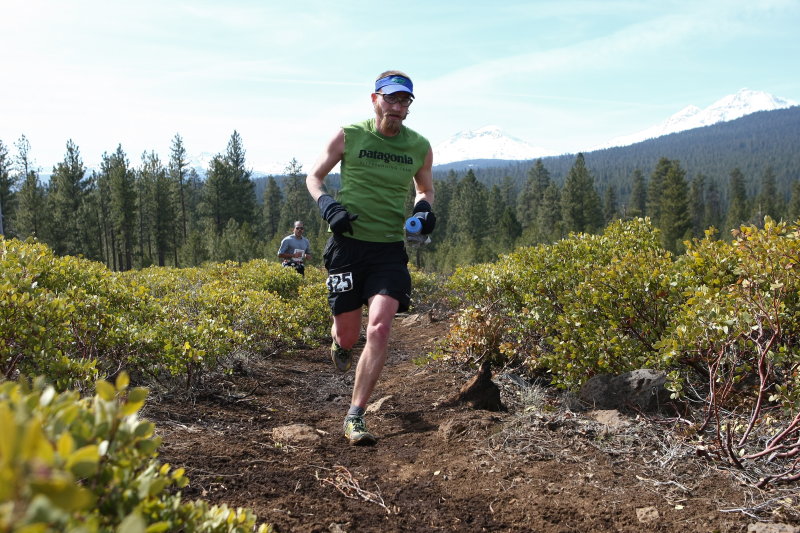 Sean added some really sweet singletrack that the Sisters Trail Alliance just built last season. Awesome addition, including the bouldery, gnarly section before Aid 2…nice, Colonel. The weather was awesome, upper 60s at the finish, 22 and a bit chilly at the start (clear night in Central Oregon…the usual), but it warmed up quick. There were some decent frozen mtn bike ruts on the trail (I’m a mtn biker…Spring unwritten rule…ride trail in the morning BEFORE it thaws in the early spring…please y’all…’nuff said).