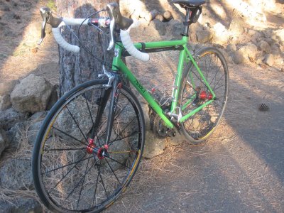 Due to 3 freak injuries (none caused by running), I’ve ridden more this spring than I have the past 2 years combined. I just got a new custom road bike built by some local dudes I know (Thanks Jason and Alan at Bend Bike N Sport). They welded up a nice steel road bike with XO Platnum steel. I’ve had it for a little over 2 weeks and it is smooth as buttah. I’ve been splitting my time between the road bike and my mountain bike each week, add in two to four 30-60+ min. bike commute rides on my cross-commuter and I’ve been in the saddle a lot lately.