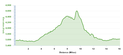 The route I chose is a 16 mile lollipop loop that starts in the Badlands and hits the 9 mile Bad Ass 50k loop on it’s backside at the mouth of Smith Canyon (Basically all the elevation gain/loss in the above profile is the 9 mile course loop). It climbs 4 miles up the canyon, then around and over a large Cinder Butte on an ATV trail (the pinnacle part of the profile), before returning back to the opening of the canyon and back into the Badlands. It’s mainly soft, sandy double track and with the recent warm snap of highs in the upper 40s and mainly rain…almost all the snow is gone out there and the double track was soft…I thought it a good route to break in my first longer run without arch supports and in the light MT100s, plus I’ve been really itching to try these shoes out on some more gnarly, technical footing, which the Cinder Butte’s ATV trail has.