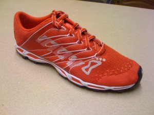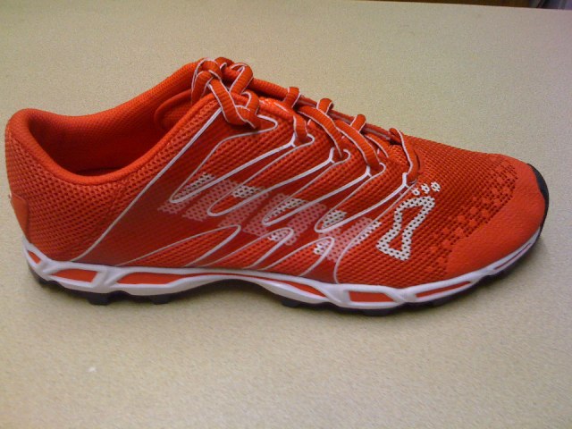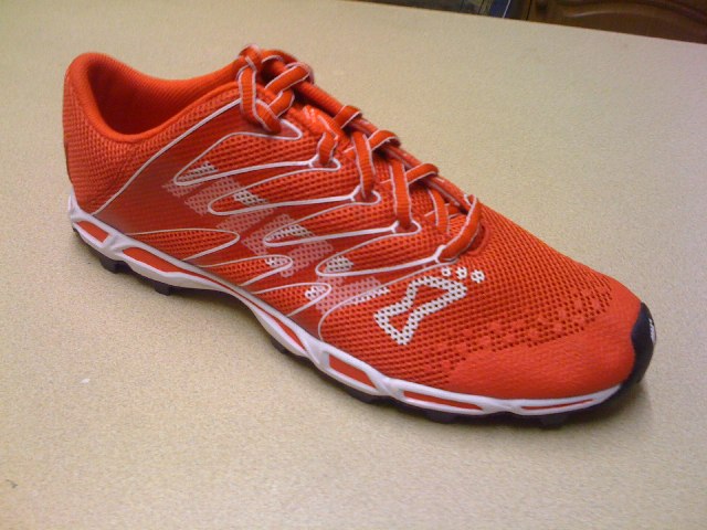 Check out these new Inov8’s set to hit the market mid 2010. Weighing in at 6.7 ounces, low-profile, and Inov8’s 1 arrow midsole thickness. Looks like they have a similar upper to the F-lite 230, but with a slightly thinner midsole (1 arrow vs. the F-lite 230’s 2 arrow midsole)…and the X-talon 212 lugged outsole. These look VERY promising. I like the orange too. I found out about these from another Oregon ultrarunner, Joe Grant, who runs in minimalist shoes.