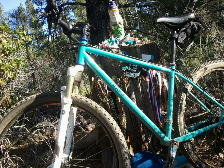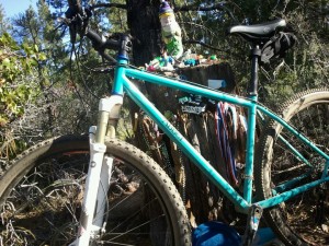 Last week had a stellar 3-day block of training that started on Thursday afternoon with a 20 miler at Tumalo Falls with some good hill training and snow running while exploring snow levels in the high country. Next morning, I jammed out a awesome ride on my new Abbey custom steel 29er mountain bike (pictured) for 37 miles and almost three and a half hour ride. In the evening, I capped off my Friday with a 4-mile warm up running with Sean finished with the two of us going head to head in FootZone’s Treadmill Challenge put together by Max King. 10 minutes on a treadmill at 10% grade. I just edged out Meissner for the bout win. Finally, to top off my 3-day block, I got up at dawn Saturday morning and did a bike-run-bike workout by riding my cross commuter to the trailhead, running a hilly 14.5 miler with a summit of Lava Butte and Green Mountain for a stellar block of training topped off with little sleep (thanks Abe).