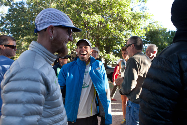 We assembled for the 7am start at Al Bahr Campground on Saturday morning. My Patagonia teammates Luke Nelson and Roch Horton were running (and Krissy Moehl was pacing). The main contenders were Luke Nelson who ran a sub 20 at Wasatch last year (but showed up with a head cold…bummer), Adam Hewey — a solid 100 mile runner and probably who I was most worried about. The dude’s a closer in 100s, 19:05 at Cascade Crest 100 last year (3rd fastest time on that course) and I heard he was super fit, as well as Dan Olmstead from Eugene. Plus a few other dark horses (Fabrice Hardel and Tim Long).