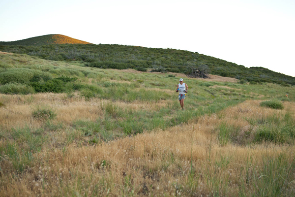 Hewey. That got me motivated. I got moving over to Stonewall Mine looking over my shoulder with a little fire in my step. This section again was a hard section mentally. It drops down into a open, dry, yellow grass meadow near Lake Cuyamaca. You’re running on flat, dry, sandy trail and double track dirt road where horses have been and it’s soft, sandy, choppy and hot and you run into the afternoon blazing sun. Plus, I was pushing the pace to put some time into Hewey.