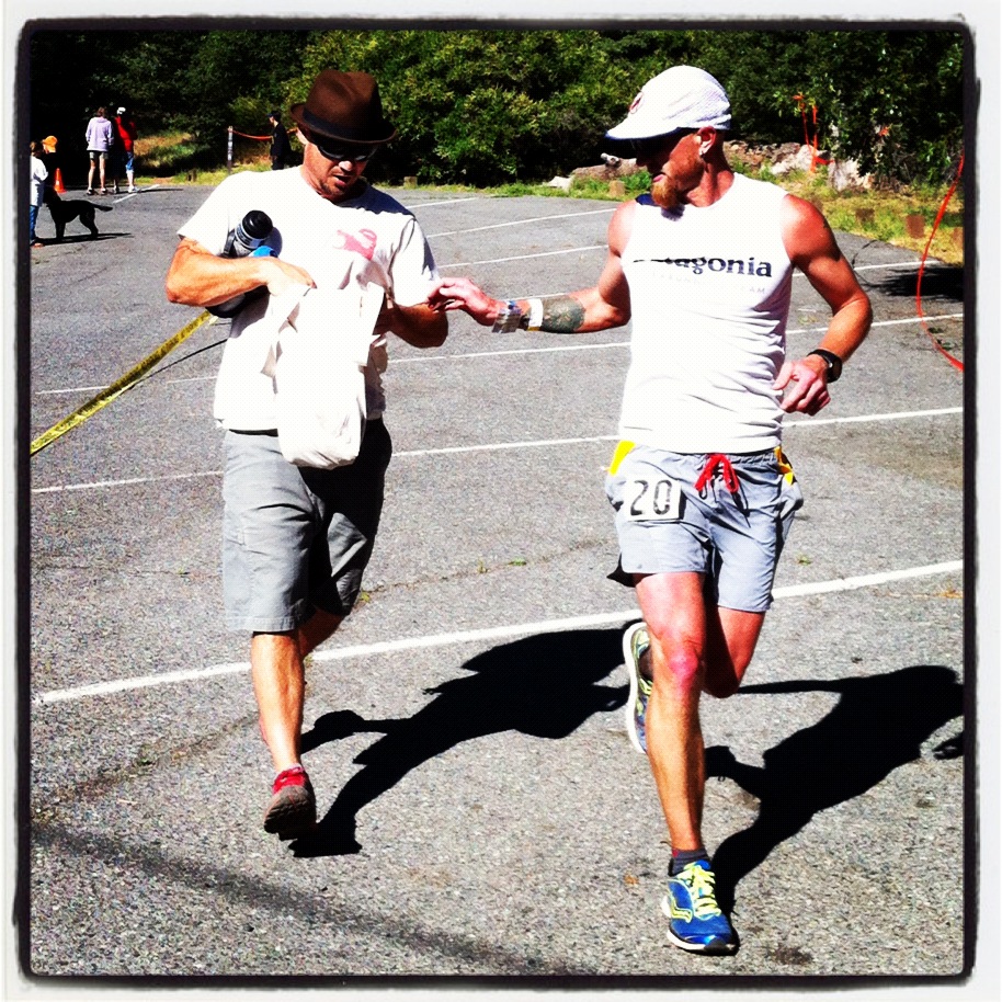 I got into Sunrise (mile 51) around 2:56pm, 13 minutes up on course record pace, and was told by George that Adam Hewey came into Pioneer (the last aid station) 7 minutes back and was looking good and was in and out. Dang, Hewey. He’s a good closer and knew he was due for a good one. He’s a 100 mile runner that has been under the radar because his insanely fast 19:05 at Cascade Crest 100 last year was overshadowed by Rod Bien’s course record run. I knew he’d be a player.