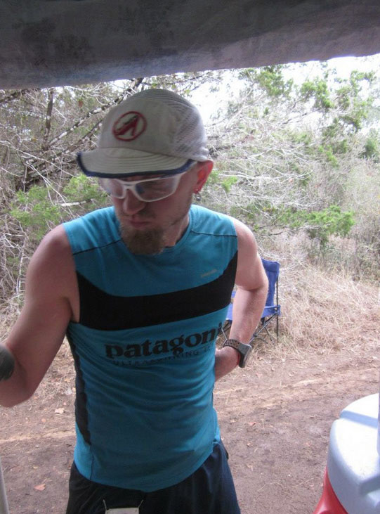For me, coming into this one fresh off strained cartilage in my sternum and missing 8 days of running when I was supposed to hit my big run really made 100k feel super tough. With lack of long runs plus the stupid water bottle mistake…more on that later…well, it kinda hurt the 2nd lap. Add to it the fact that it rained the night before and the first half of the race, made for gunky conditions to say the least. Bandera has a lot of solid, rocky sections of limestone (I think). Not a lot of loose rocks, just rocky…plus clay dirt in between. The clay sections when wet become a greasy, sticky mess. Four pound shoes and slime. Add slippery clay covering smooth solid rocks and you couldn’t use the rocks to step or plant on. The 2nd lap was better when it quit raining and we had a good breeze, it got tackier in most of the bad places.