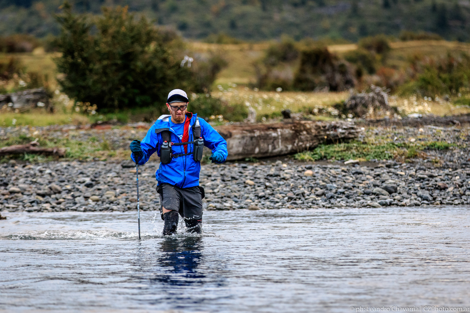 The first 60K is a combo of crossing some estancias on old 4wd roads and across some old horse/game trails before eventually popping out onto a paved road by a lake, then back onto some old overgrown grass doubletrack and singletrack. It started raining a couple of hours after the start, which would continue for the next 10 hours. A light mist that would utterly soak to the bone, making all the underbrush wet and further saturating the already saturdated ground.
