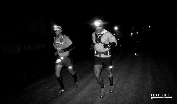 We arrived the first major river crossing and ran up the shore to the fixed rope line tied to trees on both sides. As we stood there, Emmanuel called across to the volunteers on the other side in spanish, they called back. We were standing 2 feet from each other and I gestured with my hand “how deep?” and Emmanuel being shorter than me, indicated up to his neck. I let out a loud “Umpf” and took my waist lamp and hiked it up around my neck. I offered my hand in the overhand chilean hand shake style…we shook hands in an unspoken “alright, let’s do this!” and I plunged into the dark cold river. It came up to my armpits while on my tip toes. Side note: After the race I asked him what he said to the volunteers, He had asked, “How deep is it?” They replied, “150 centimeters” (and he’s 160cm!)